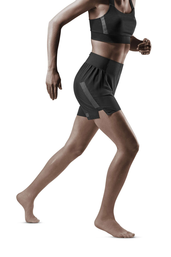 CEP's Run Loose Fit shorts for women are  loose, lightweight running shorts that are perfect for your everyday runs. They offer superior quality and comfort on all your warm weather adventures. The reflective elements on these running shorts make them a great choice for any time of day; allowing you to run safely, knowing that you are visible to those around you. A drawstring waistband for easy adjustments complete with a zipper back pocket to store anything you might need makes these the perfect all day short.