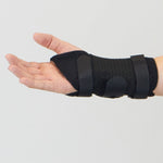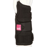 The medi premium wrist brace provides relief from minor wrist sprains and strains as well as carpal tunnel, arthritis, tendonitis and post casting issues. The breathable hypoallergenic material with the unique design allows for full use of fingers while wearing. The easy one handed pull on application along with the removable dorsal/palmer stays and the adjustable compression straps allow for a personalized fit. Offered in black and available in 5 sizes in either right or left hand orientation.