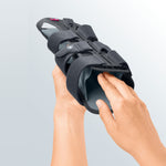 Manumed® RFX offers maximum support combined with soft brace livability to reimagine the fracture brace. The extended, aluminum palmer and dorsal stays are easily formed to fit patient needs. The Airtex liner is fully machine washable and can be easily applied and worn over a dressing.  The Manumed® RFX compares nicely to a plaster cast through both time savings and hygienically. The adjustable, numbered Velcro® closures make it easy to apply and re-apply. It's perfect for use after fractures of the distal radius or forearm.